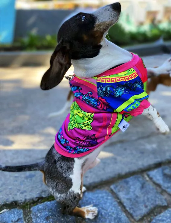 En la foto nuestro modelo es MALEK , Salchicha de 8,5 kg usando Talle M